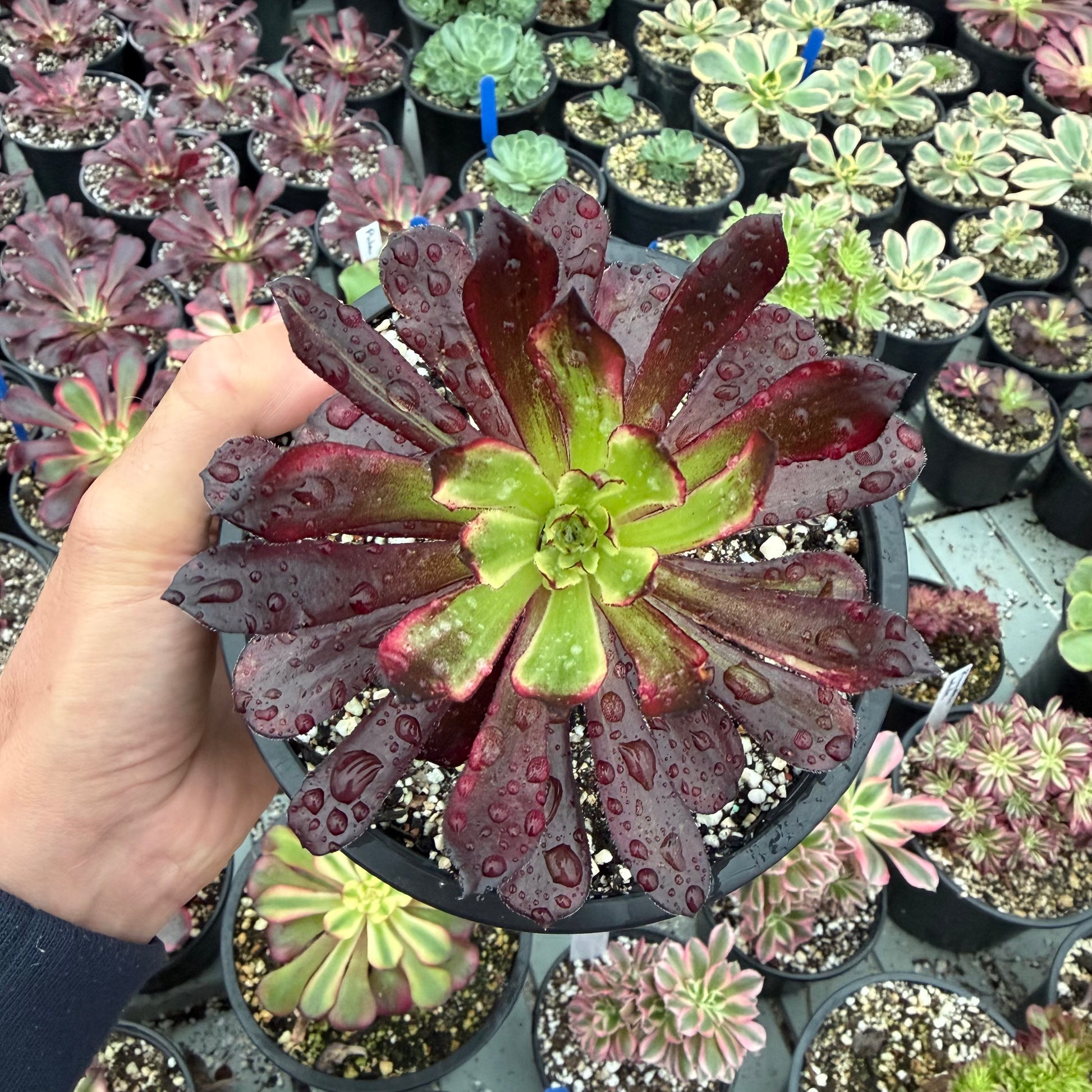 Les aeoniums bien que magnifiques restent des plantes et évoluent avec les saisons. En période de croissance les couleurs peuvent s'estomper pour s'intensifier à nouveau à l'approche de l'été. L'aspect peut lui aussi varier, notamment en cas de fortes chaleurs, les rosettes laissent tomber un nombre considérable de feuilles et peuvent se refermer afin de lutter contre l'évaporation.