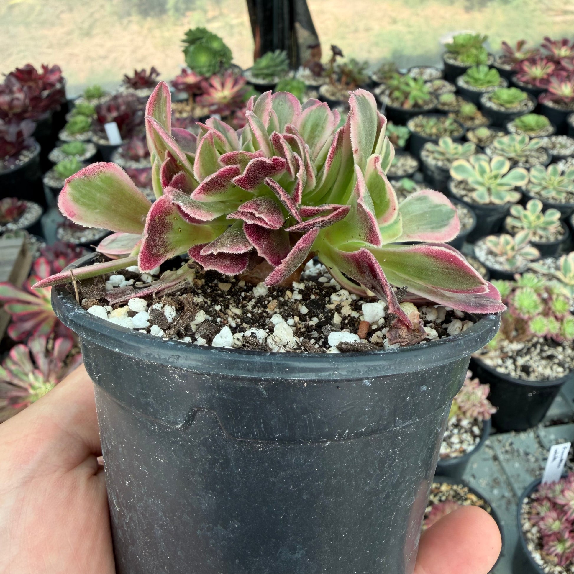 Petite bouture dans un pot de 10cm pour une échelle de taille. Tronc avec belle fasciation ( aplatis) prometteur.
